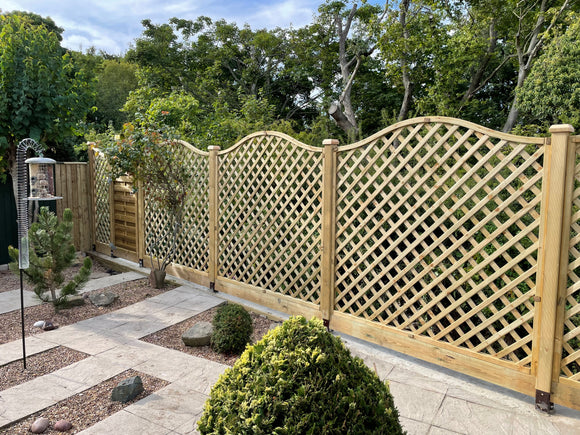 View full detailsPressure treated 45mm rebated frame with morticed, tenoned and stapled joints. Weather resistant fixings 8mm x 95mm boards. Lattice = 12mm x 30mm...